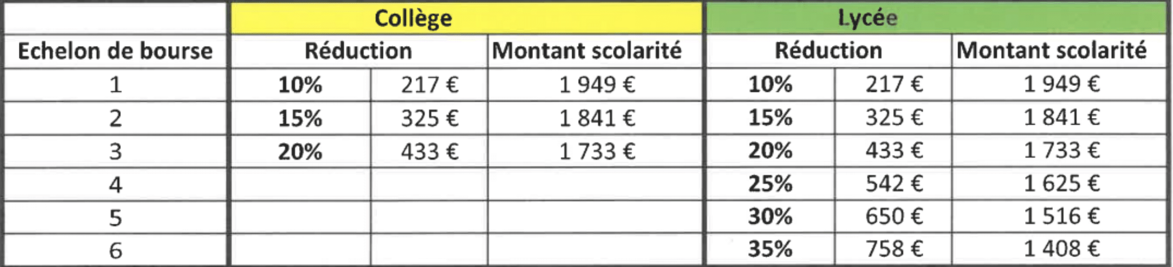 Scolarisation 2026 – 2027 | Collège et Lycée Polyvalent | Frais de scolarité | 2 166 € |