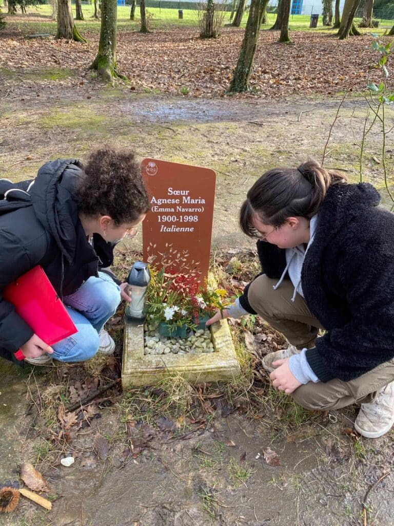 Au cimetière de Notre Dame de Sion, ils ont découvert le nom de Sœur Gila, née en Roumanie et morte en déportation à Auschwitz en 1944. En son hommage, des bougies ont été déposées au pied de la stèle qui porte son nom.