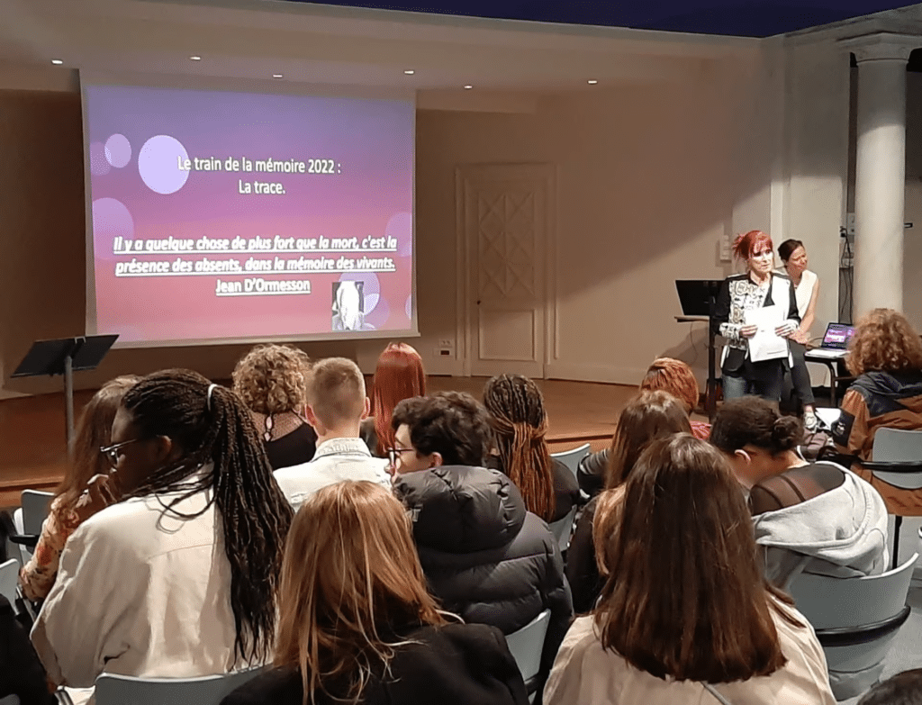 Imaginer, savoir, connaître mieux ce que fut la Shoah, tels sont les objectifs autour desquels se réunissent les 26 lycéens et 7 professeurs du projet Train de la Mémoire 2024. Depuis novembre dernier, depuis sept mois, ces jeunes se préparent à un voyage bien particulier vers les camps d’Auschwitz-Birkenau-Monowitz, au cœur des vestiges du système génocidaire nazi. La grande historienne Annette Wieviorka considère qu’ « il n’y a rien à voir à Auschwitz si l’on ne sait pas déjà ce qu’il y a à y voir » et que « le Savoir, dans ce type de lieu, c’est celui qu’on apporte avec soi ». Voilà pourquoi, avant la visite, s’impose l’Etude.